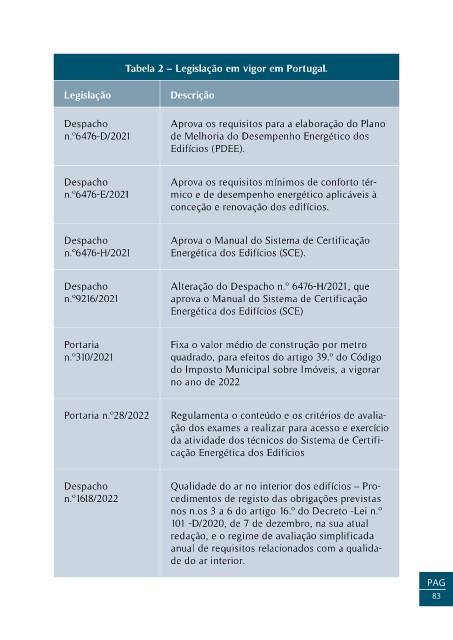 n.º6476-E/2021 mico e de desempenho energético aplicáveis à